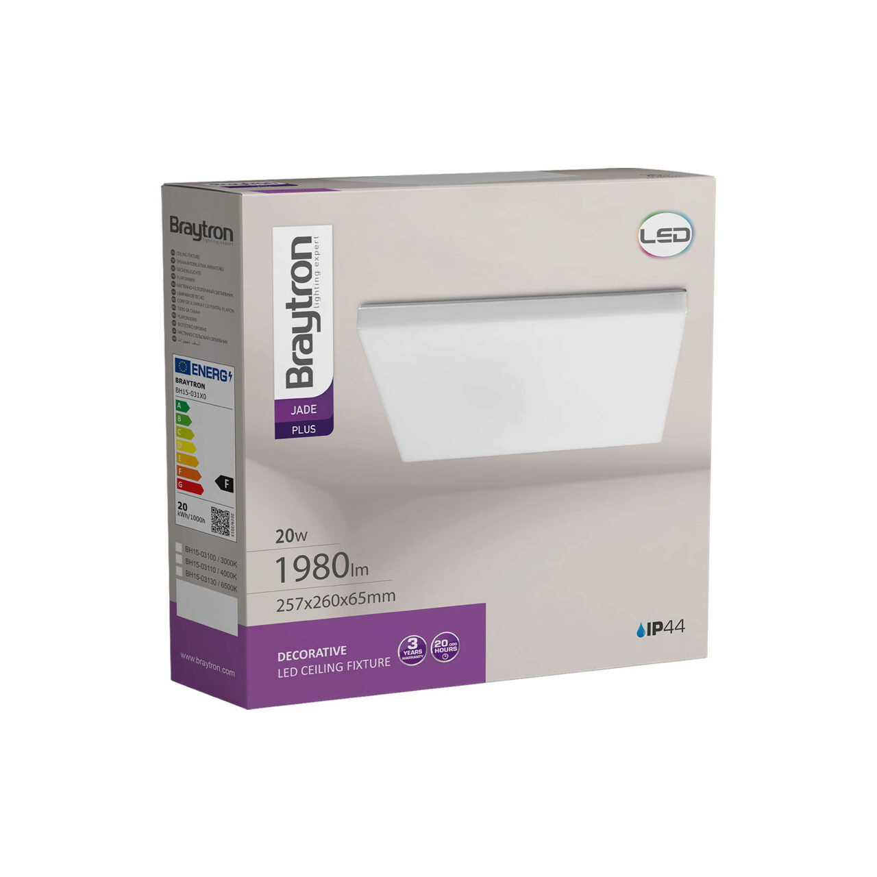PLAFONIERA LED 20W 3000K IP44 JADE SQR, BR PLUS